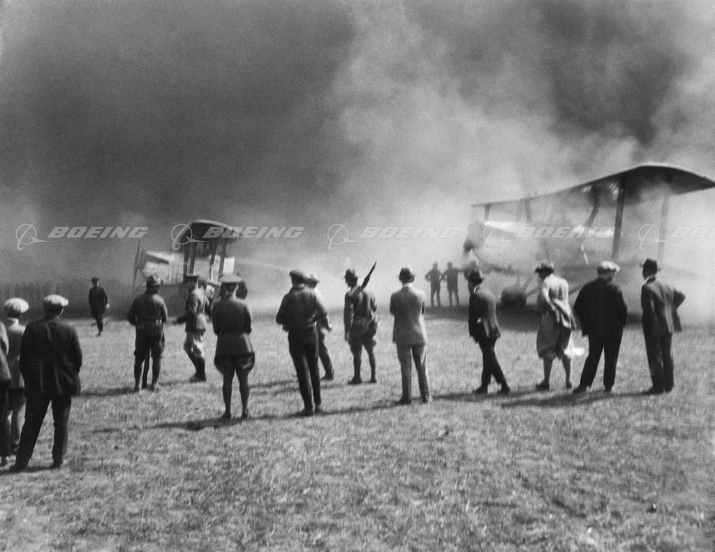 Ordered by the U.S. Army Air Service, Douglas built five Douglas World Cruisers to attempt the first flight around the world. The first DWC, a prototype delivered for test and evaluation, made its first flight in November 1923. Douglas soon received a contract for four production aircraft. On March 17, 1924, four DWCs left Clover Field, Santa Monica, Calif., for Seattle, Wash., the official starting point. While in Seattle, Boeing employees exchanged the planes' wheels for pontoon floats for the long over-water flights. It was also in Seattle that the planes were formally named for four major American cities, Seattle, Chicago, Boston and New Orleans. On April 4 the four took off from Sand Point on Lake Washington on the first leg of their long flight. The Seattle, trapped in fog on April 30, crashed on an Alaskan mountainside. After walking ten days through the frozen wilderness, the two-man crew safely reached Dutch Harbor. The other three DWCs continued on and were kept flying with the help of 15 extra engines, 14 extra sets of floats and duplicates of all airframe parts, stashed at various sites around the world. On June 26 they reached Calcutta in India where the floats were replaced with wheels. The DWCs departed Orkney Island in Scotland on July 30, again as seaplanes. On August 3, with nearly three-quarters of the flight completed, the Boston made a forced landing in the mid-Atlantic. The crew was rescued and reunited with the Chicago and New Orleans on September 3 in Nova Scotia. Two days later the prototype DWC joined the group and was named Boston II, so the original's crew could complete the flight. On September 28, as landplanes, they returned to Seattle. They had logged 27,553 miles in six months and six days, flown over 28 countries and crossed the Atlantic and Pacific Oceans. The flight was the greatest feat in aviation up to that time and earned Douglas Aircraft Company its motto, First Around the World.