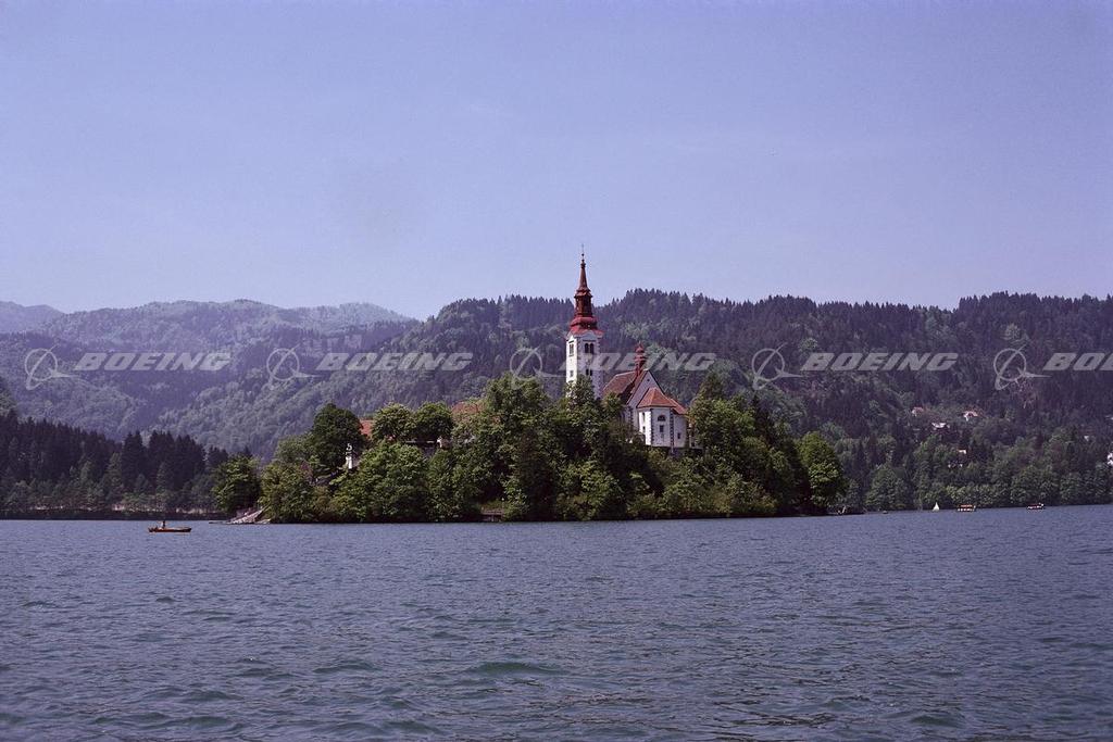 Lake Bled in northwestern Slovenia is picturesque and a popular tourist destination. It is a glacial lake in the Julian Alps surrounded by mountains and forests. The Church of Assumption on Bled Island sits in the middle of the lake.