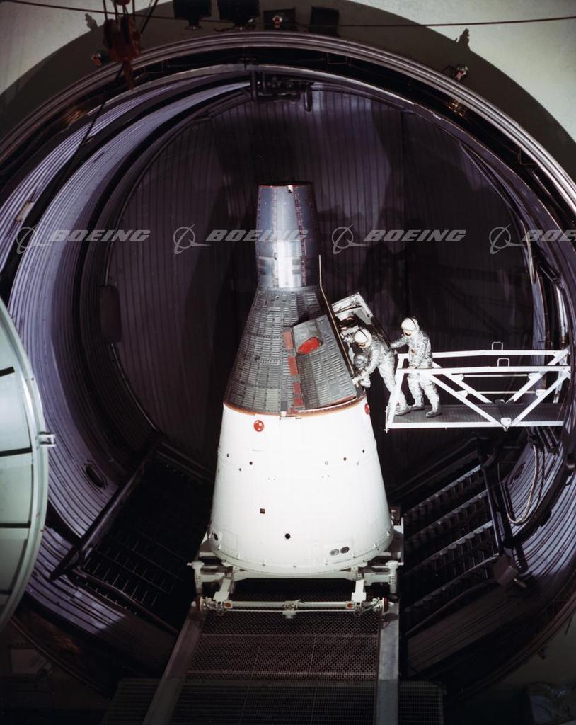 Astronauts on Gangplank Entering Gemini Capsule in Test Chamber