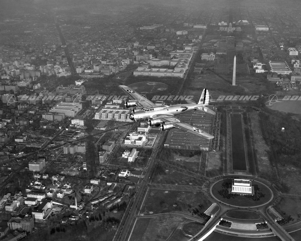 As the storm of World War II shook the world, Boeing-designed B-17 bombers darkened European skies, dropping 640,036 bombs on designated targets. Described by General H. H. Hap Arnold, as the backbone of our worldwide aerial offensive, the B-17 Flying Fortress served in every World War II combat zone. Boeing, Douglas, and Lockheed Vega produced 12,731 B-17s at plants across the country, and the four-engine bombers became legendary for their ability to stay in the air after taking brutal poundings.