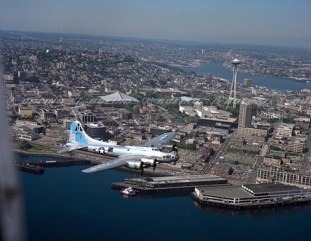 B-17E Flying Fortress Test Flight Over Seattle Waterfront