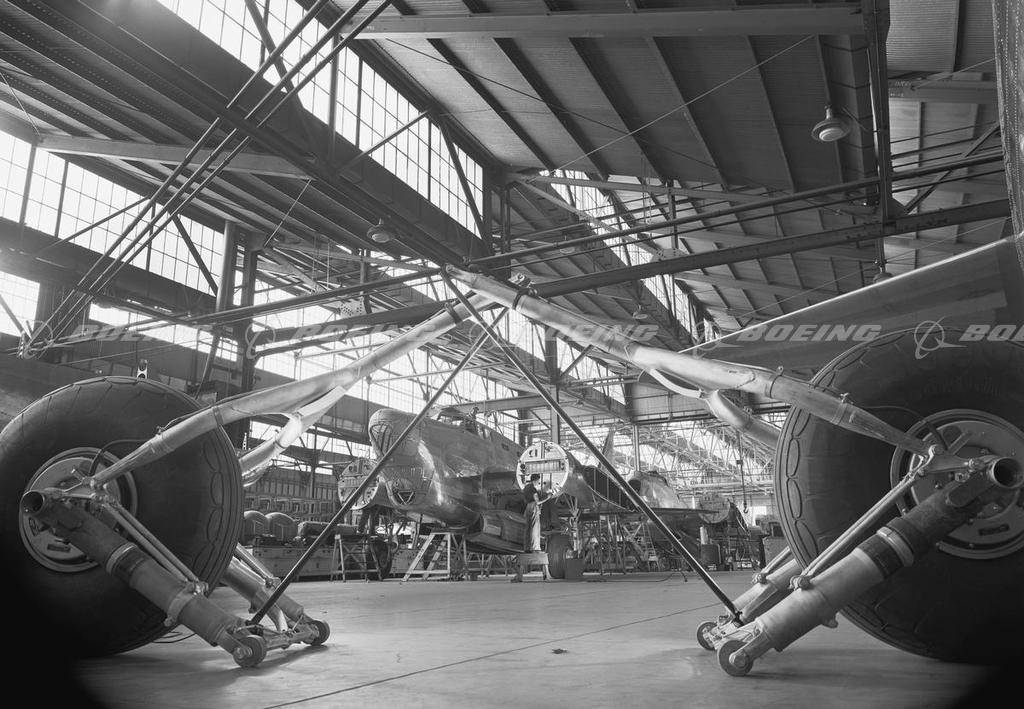 Douglas Aircraft Worker in Wheel Well of a DC-3