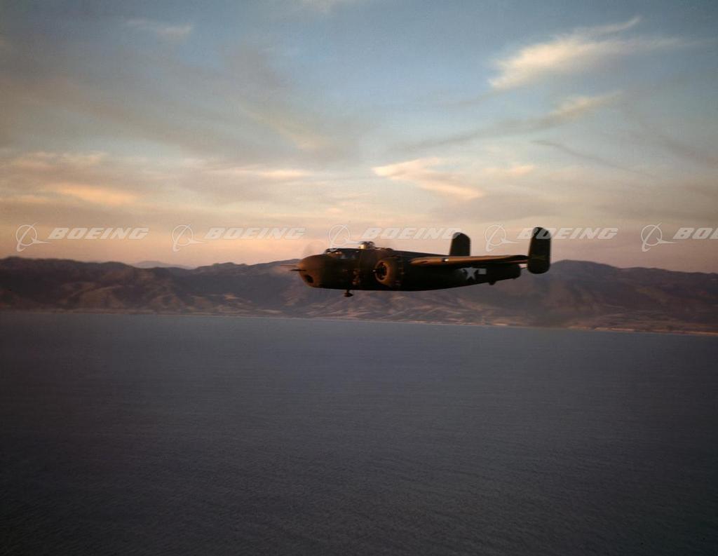 Named after General 'Billy' Mitchell, America's foremost supporter of air power, the B-25 Mitchell first flew on Aug. 19, 1940, and was the first multiengine design to go beyond the prototype stage. North American Aviation built more than 11,000 B-25s for the U.S. Army Air Forces and the U.S. Navy, which called it the PBJ, plus 50 each for China and Great Britain. The B-25 bomber had a wingspan of 67 feet and was 52 feet 11 inches long. One version, the B-25H, was the most heavily armed attack bomber of its time, with a 75-millimeter gun, up to 14 .50 caliber machine guns and 5,000 pounds of bombs carried in an internal bomb bay.