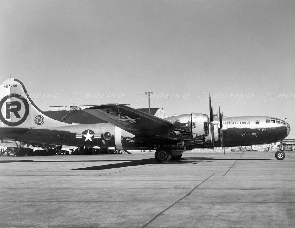 The Boeing B-29 Superfortress, the most technologically advanced airplane produced during World War II, first flew Sept. 21, 1942. The B-29 had many new features, including guns that could be fired by remote control. The crew areas were pressurized and connected by a long tube over the bomb bays. The tail gunner had a separate pressurized area that could only be left during unpressurized flight. At 105,000 pounds, the B-29 was also the heaviest production plane because of increases in range, bomb load and defensive requirements. The B-29 used the high-speed Boeing 117 airfoil, and its larger Fowler flaps added to the wing area as they increased lift. Modifications led to the B-29D, upgraded to the B-50, and the RB-29 photo reconnaissance aircraft. The Soviet-built copy of the B-29 was called the Tupolev Tu-4. A total of 3,970 B-29s were built.