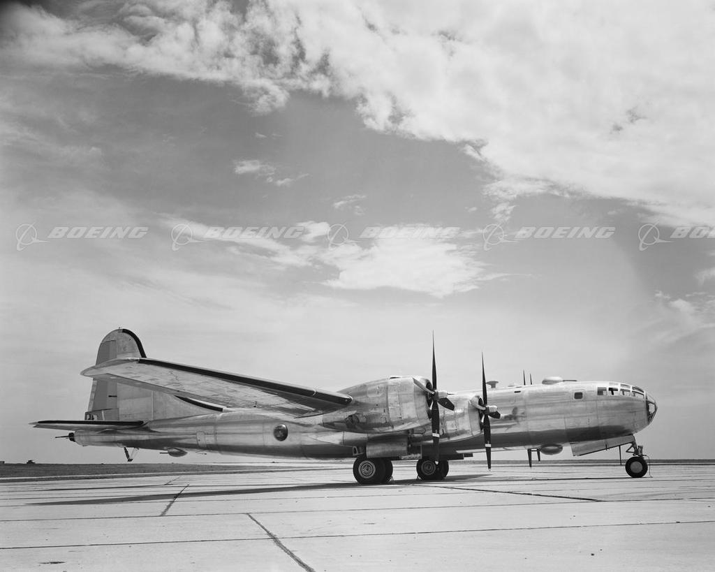 The Boeing B-29 was the most technologically advanced airplane program during WWII. At 105,000 pounds, it was the world's heaviest production airplane. The B-28 used state-of-the-art 2,200 horsepower Wright R3350 twin-row radial engines, each fitted with two turbosuperchargers. It was the first bomber with crew-cabin pressurization and remotely controlled power turrets. By production end, 3,970 B-29s had been built.