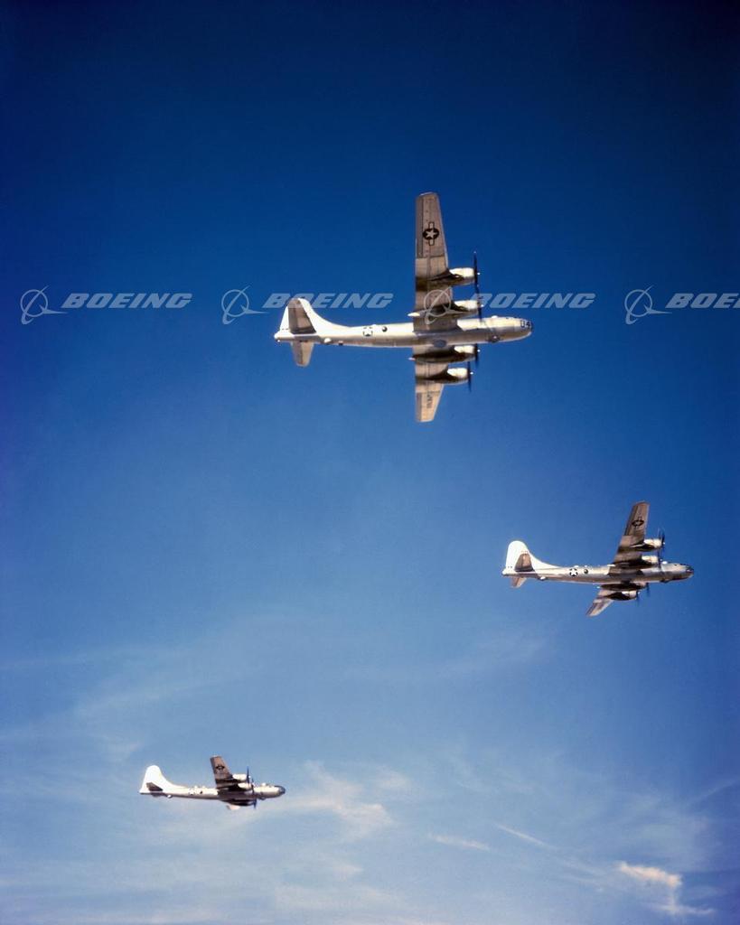 The Boeing B-29, the most technologically advanced airplane produced during World War II, first flew Sept. 21, 1942. At 105,000 pounds, it was the world's heaviest production airplane. It was the first bomber with crew-cabin pressurization and remotely controlled power turrets. A total of 3,970 B-29s were built, with improvements added to the bombers as they went through the production line as data came in from pilots in action. World War II ended when two B-29s, the Enola Gay and Bockscar dropped atomic bombs on Hiroshima and Nagasaki.