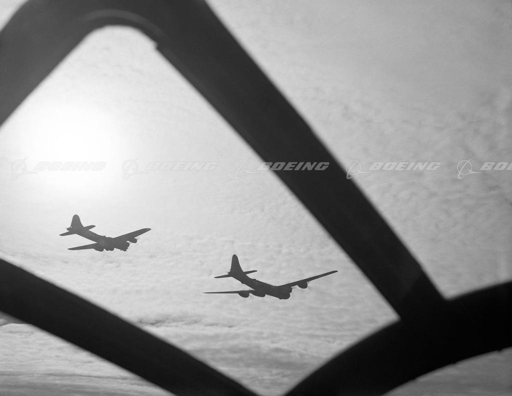 B-29 and B-17 Formation Seen from a B-29 Cockpit