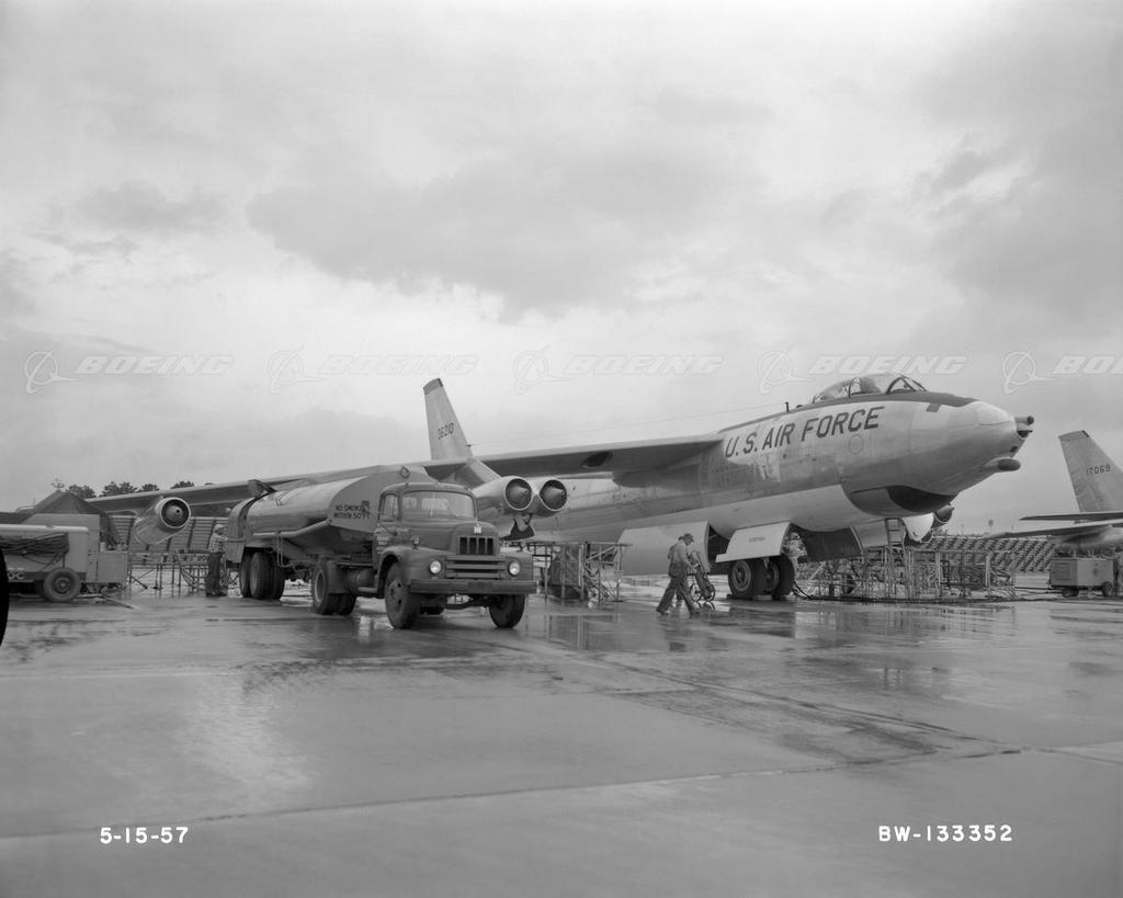 Boeing Worker Reaches Up Under B-47E Stratojet Wing