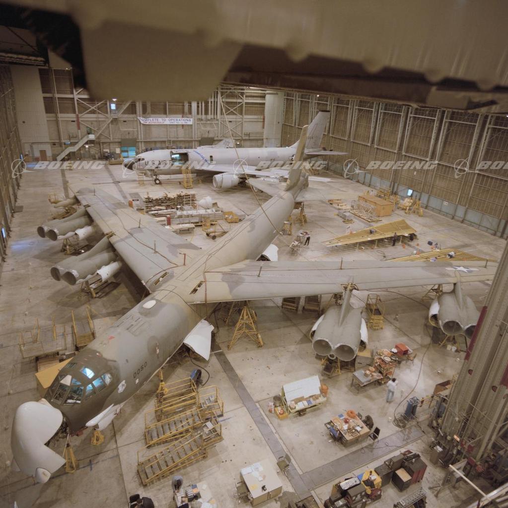 KC-97 and XB-52 Stratofortress in Boeing Flight Test Hangar