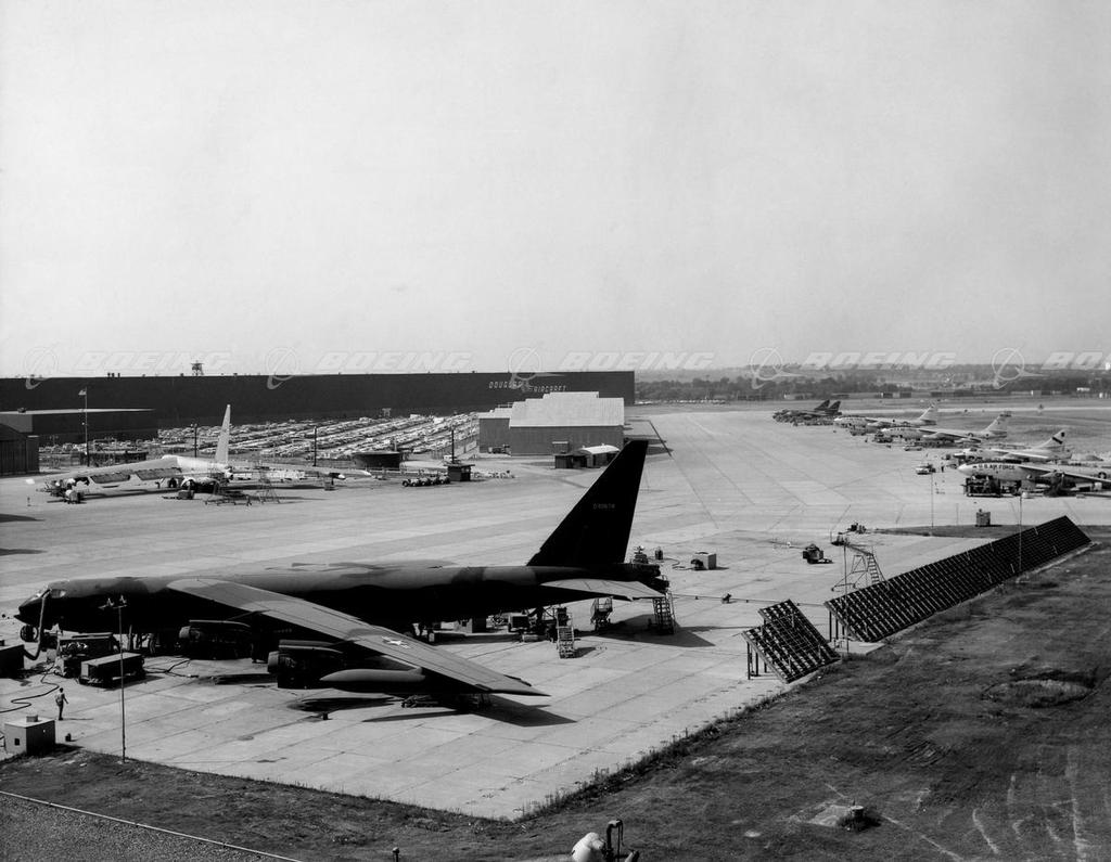 Douglas-Tulsa received a contract to modify 117 B-52 Stratofortresses. Shown here are a B-52 as well as B-47 Stratojets and RB-66 Destroyers on the flight ramp.