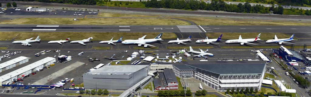 Seven (7) Series from Air; 707; 717; 727; 737; 747; 757; 767; 777-300-ER; 787; Omega; Delta; United; Alaska; Cathay pacific; FedEx; Emirates; ANA; Museum of Flight; Boeing field; 2016-07-16; View from West to East; K66565-41