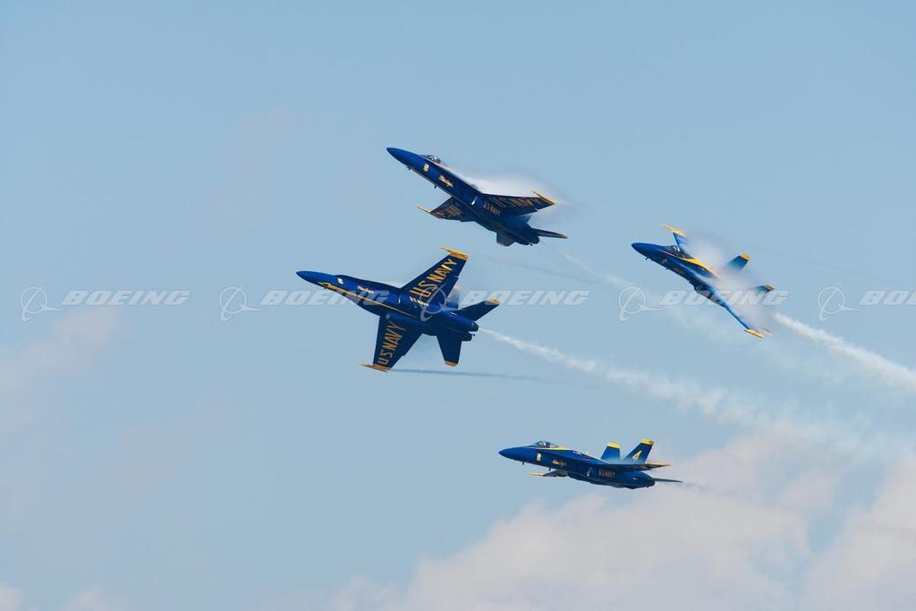 Blue Angels F/A-18A Hornet in a Diamond Flat Pass
