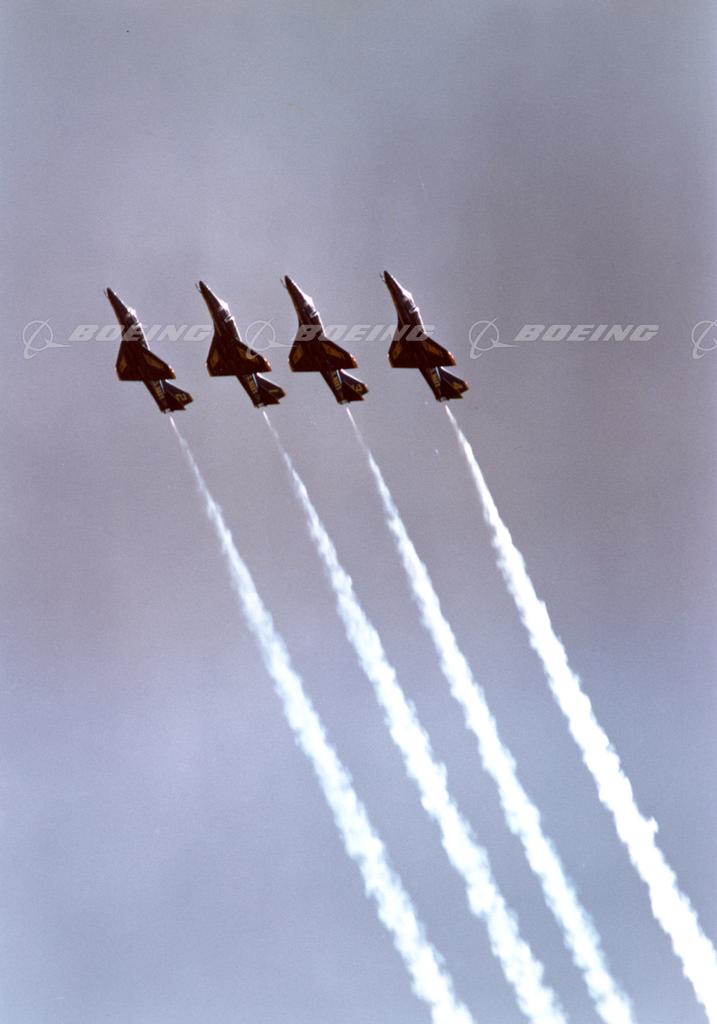 Blue Angels A-4 Skyhawks in Diamond Formation