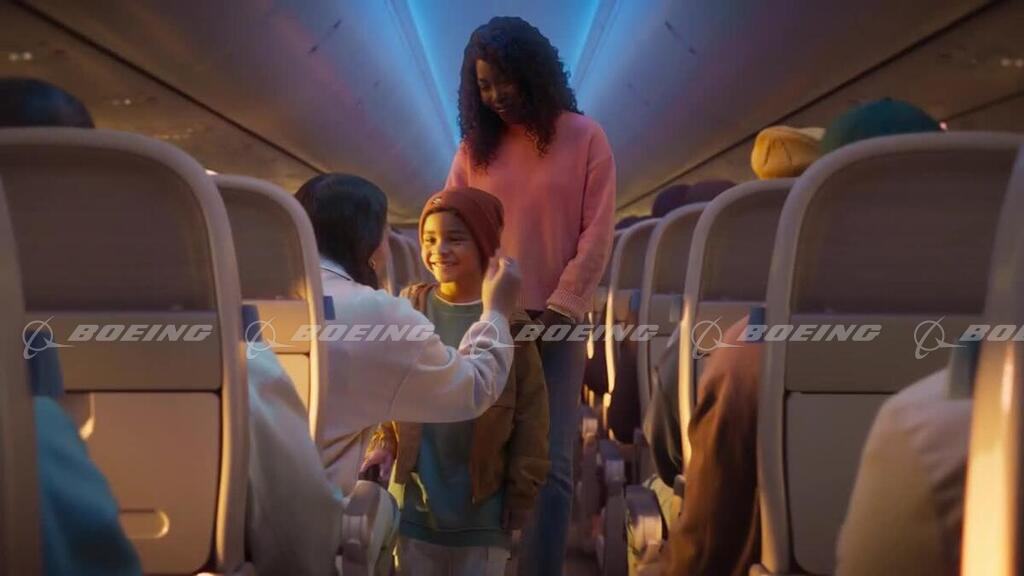 Cabin Interior video of passengers boarding a Boeing 737 MAX family airplane.
