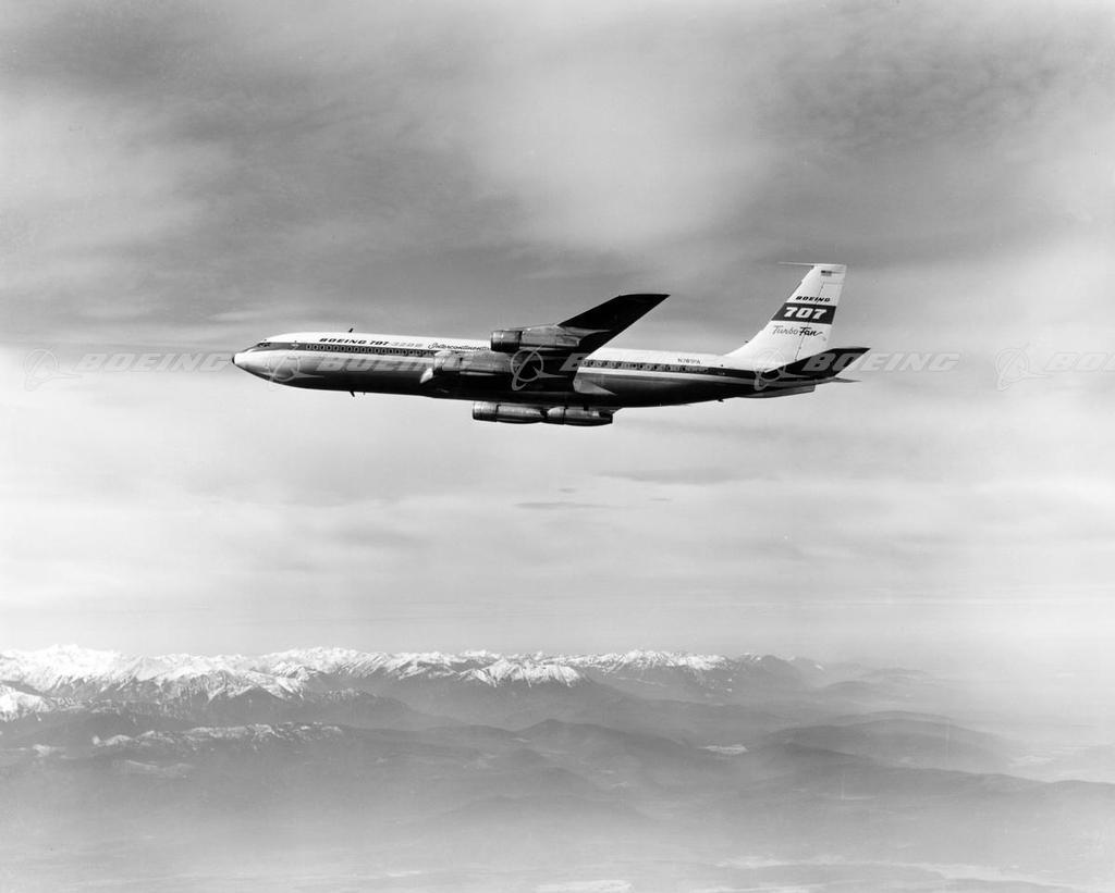 When the first 707 took to the air, those who could travel by air flew in slow, pistonpowered transports, while just as many traveled by train, and most crossed the Atlantic by ship. In just two years, the 707 would help change how the world traveled—as travel by air eclipsed travel by rail and sea.