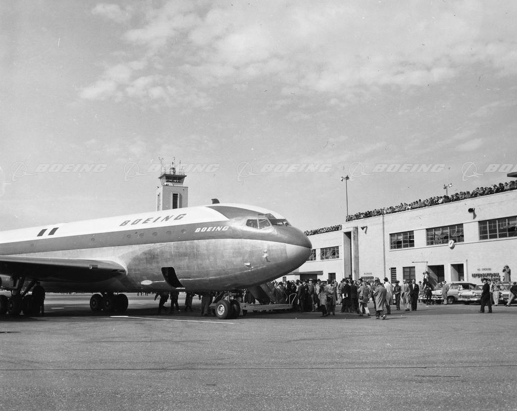 Boeing 707 on Tarmac in Baltimore Following Record Setting Flight, 1957