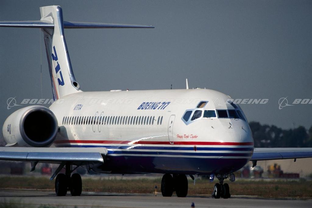 The 717 is a full-size twinjet designed specifically for the short-range, 100-seat regional airline market and is a very efficient and exceptionally quiet airplane. Its advanced technologies and rugged simplicity of design allow a quick turnaround time at a wide range of airports, so crew and passengers spend less time on the ground. It makes effective use of today's technology to lower operating costs, reduce noise and emissions, and provide big jet comfort. The airplane, formerly MD-95, was designated the Boeing 717 following the merger of McDonnell Douglas and The Boeing Company in 1997. In early 2005, after careful assessment of the challenging 100-seat market, Boeing announced that it will conclude 717 production in 2006 after delivering on current customer commitments.
