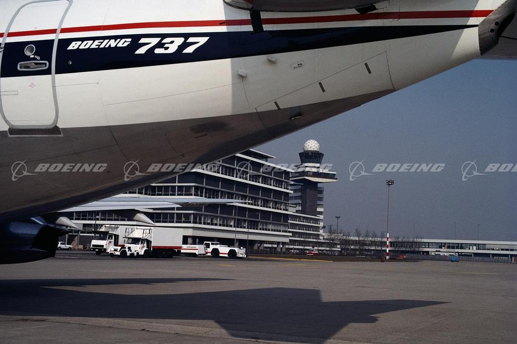 737-500 on Flight Apron at Sunset with Passenger Door Open