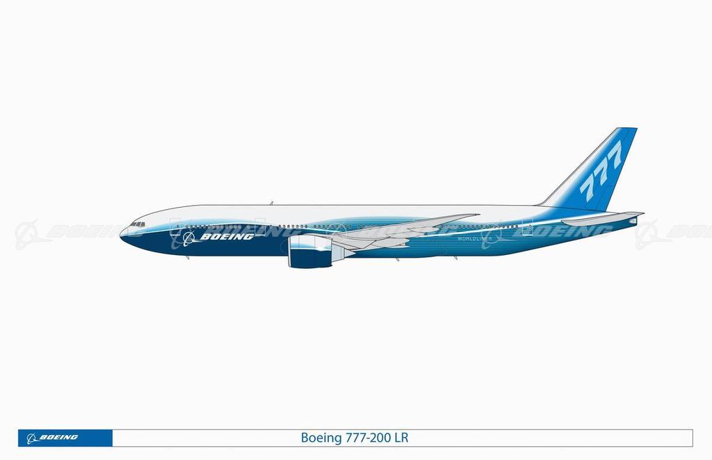 The newest member of the 777 family, the 777-200LR Worldliner has the capability to connect virtually any two cities in the world nonstop. It will carry more passengers and more revenue cargo farther than any other jetliner. Provisions for up to three optional fuel tanks have been added in the aft cargo area of the 777-200LR to be able to fly a range of 9,380 nautical miles (17,370 kilometers) with full passenger payload (301 passengers). On long-range routes served by the 777-200ER, the 777-200LR provides an additional 53,000 lbs. (24,040 kg) of revenue cargo capability.