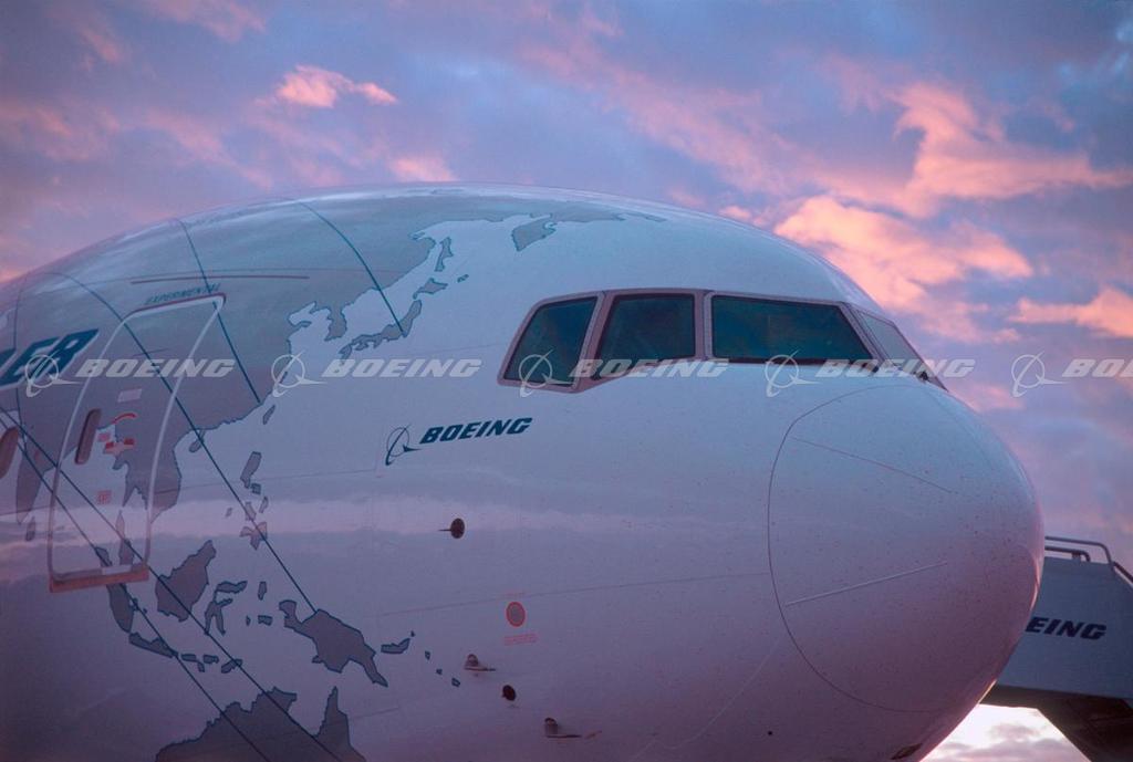 Boeing 777-300ER on the Tarmac at Sunrise, Edwards Air Force Base, Calif.
