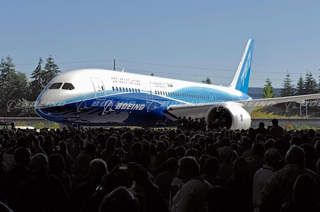 Crowds Gather Under the New 787 Dreamliner at its Rollout Event