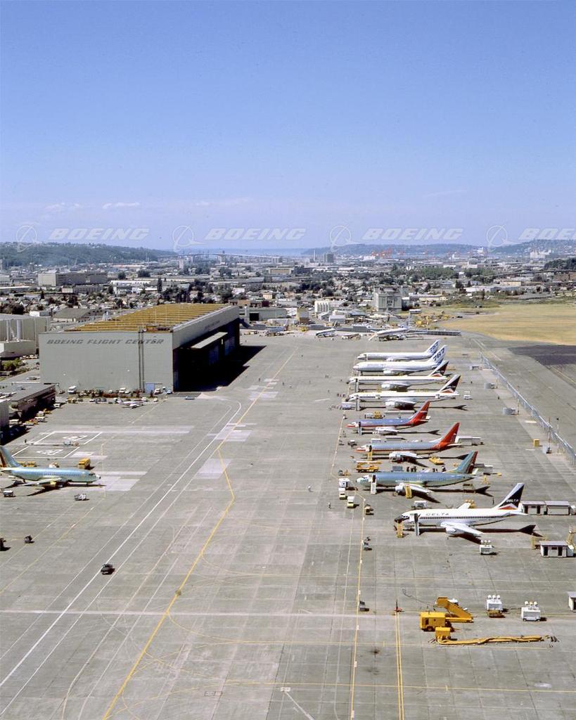Boeing Commercial Jets on the Flight Line at Boeing Field, July 1984