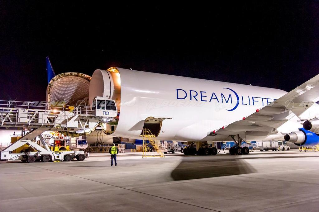 Boeing Dreamlifter Unloading 787 Forward and Aft Sections