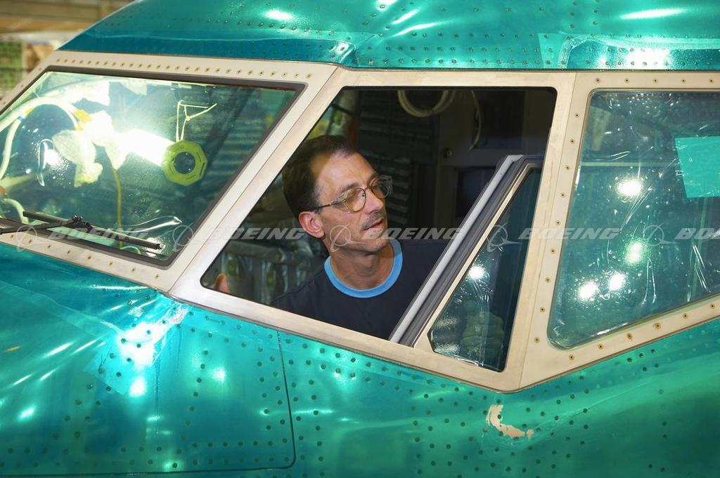 Boeing Employee Installs a Flight Deck Windshield on a 737