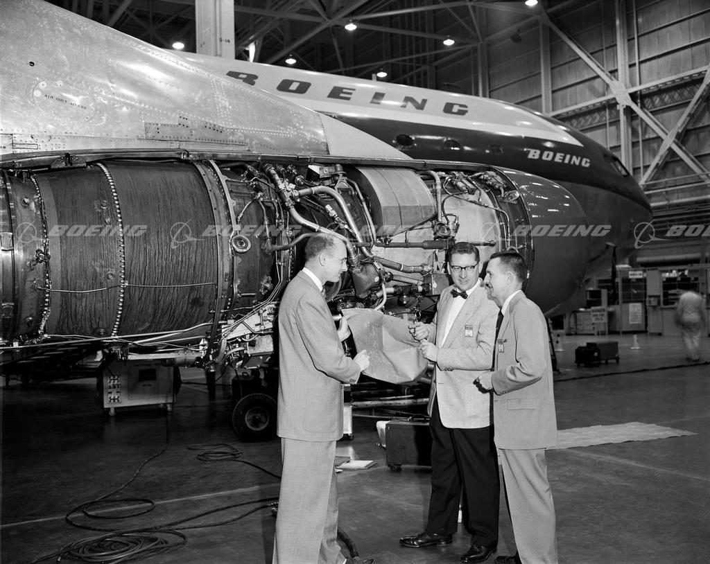 William E. Boeing and William M. Allen Inspect the Dash 80 Assembly