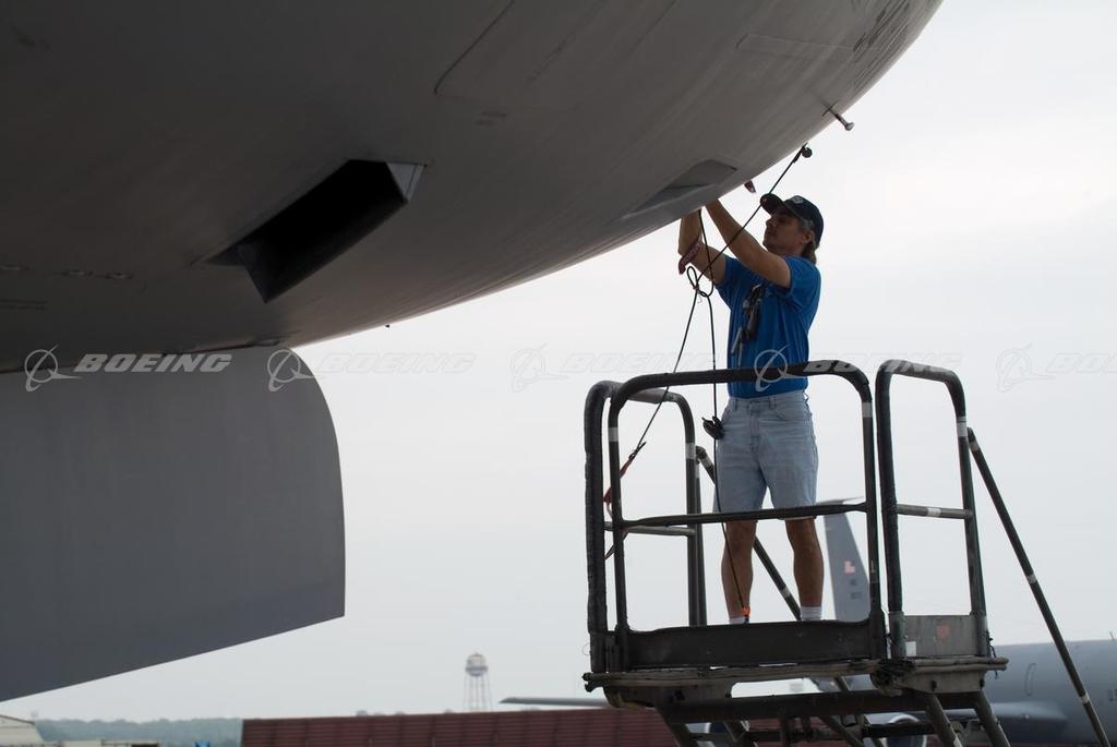 Boeing Ground Crew Member Inspects a C-17 Globemaster III Fitting