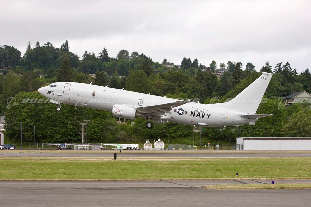 US Navy P-8A Poseidon Takes Off from Boeing Facility