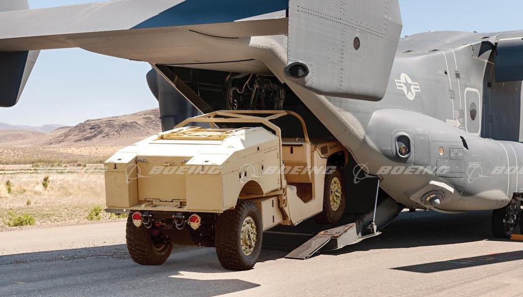 Boeing’s Phantom Badger is a rugged combat support vehicle designed for internal transport aboard the V-22, CH-47, C-130, C-17 and other aircraft. The vehicle features an innovative design that allows operators to change the mission modules within minutes. This brand new 2014 personnel module carries up to eight warfighters and their gear, plus two more operators in the driver’s compartment.
