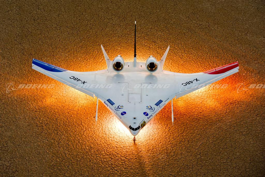 The X-48C, designed by Boeing Research & Technology, built by Cranfield Aerospace Ltd. and flown in partnership with NASA and the U.S. Air Force Research Laboratory, is a scale model of a heavy-lift, subsonic vehicle that forgoes the conventional tube-and-wing airplane design in favor of a triangular tailless aircraft that effectively merges the vehicle’s wing and body. Boeing believes the concept could be developed in the next 15 to 20 years for military applications such as aerial refueling and cargo missions.