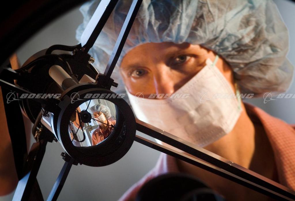 Boeing SVS Technician Inspects Airborne Relay Mirror System (ARMS)