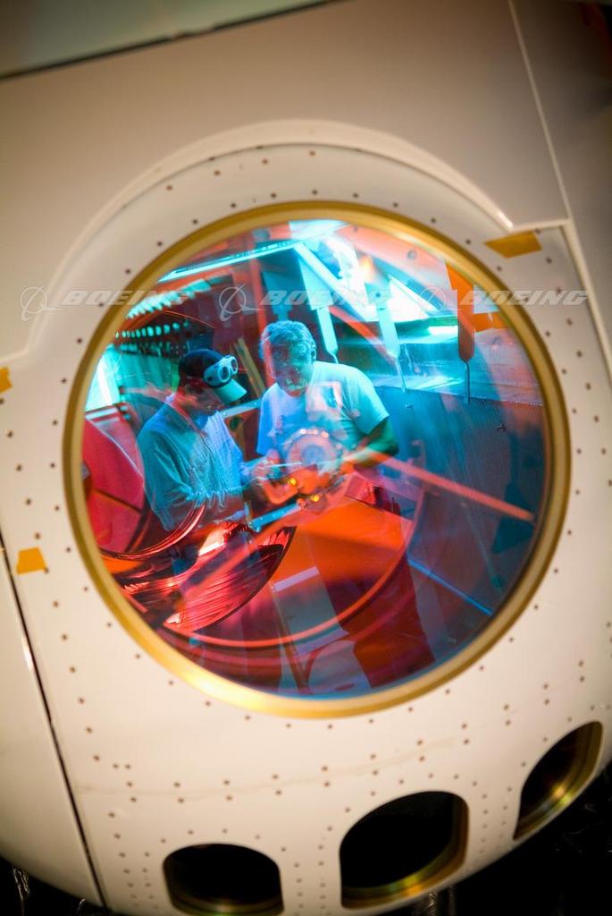 Boeing-SVS Technician Reflected in the Airborne Relay Mirror System (ARMS)
