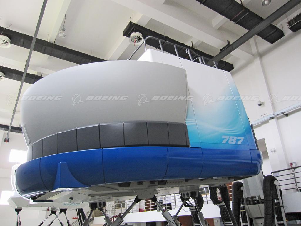 Boeing introduced the first 787 training suite in China in June 2012 and has also expanded its flight Services business with a 747-400 full-flight simulator at its Shanghai training campus. Pictured here, the 787 Full flight Simulator at the Shanghai Facility.