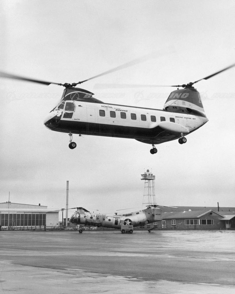 Model 107 Test Bed Vehicle Hovering over Vertol Division
