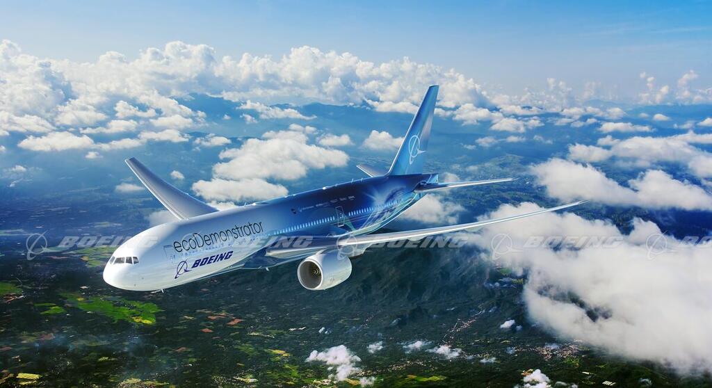 ecoDemonstrator 777 in flight over mountain