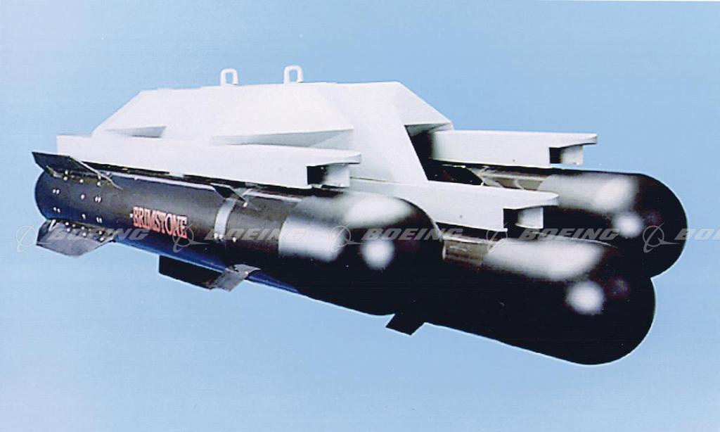 The Brimstone missile system is an autonomous millimeter-wave version of the U. S. HELLFIRE antiarmor missile. The Brimstone missile system includes three missiles mounted on a three-rail launcher, integrated to operate off of the carrier, Tornado and Eurofighter 2000 aircraft. Photo Credit Alenia-Marconi
