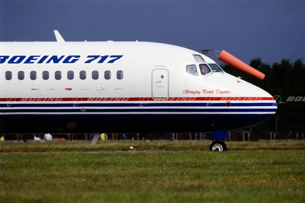 The 717 is a full-size twinjet designed specifically for the short-range, 100-seat regional airline market and is a very efficient and exceptionally quiet airplane. Its advanced technologies and rugged simplicity of design allow it quick turnaround time at a wide range of airports, so crew and passengers spend less time on the ground. It makes effective use of today's technology to lower operating costs, reduce noise and emissions, and provide big jet comfort. The airplane, formerly MD-95, was designated the Boeing 717 following the merger of McDonnell Douglas and The Boeing Company in 1997. In early 2005, after careful assessment of the challenging 100-seat market, Boeing announced that it will conclude 717 production in 2006 after delivering on current customer commitments.
