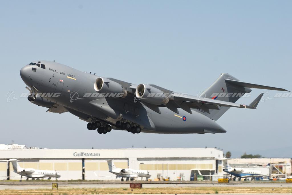 RAF C-17 Takes off from Boeing Long Beach^ CA