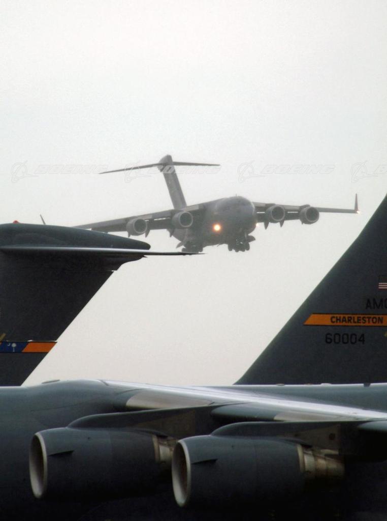 C-17 Globemaster III Landing Over Fleet of C-17s
