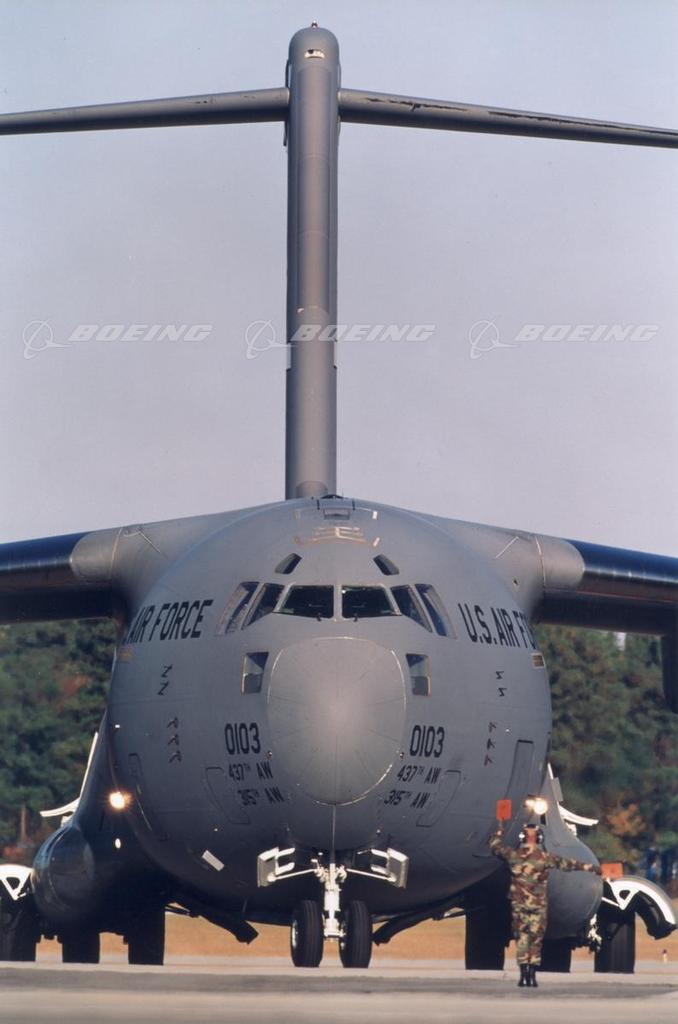 The C-17 Globemaster III is a high-wing, four-engine, T-tailed aircraft with a rear loading ramp. With its 160,000-pound payload, the C-17 can take off from a 7,600-foot airfield, fly 2,400 nautical miles and land on a small, austere airfield in 3,000 feet or less. The C-17 can be refueled in flight. On the ground, a fully loaded aircraft, using engine reversers, can back up a 2 percent slope. The C-17 is built in Long Beach, Calif.