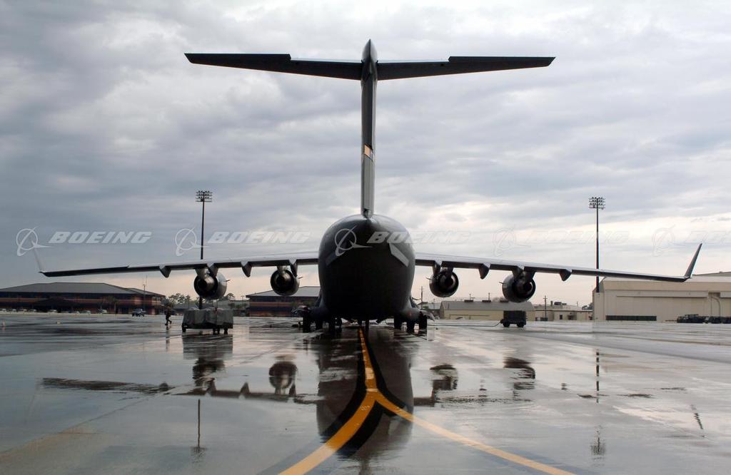 The C-17 Globemaster III is a high-wing, four-engine, T-tailed aircraft with a rear loading ramp. With its 160,000-pound payload, the C-17 can take off from a 7,600-foot airfield, fly 2,400 nautical miles and land on a small, austere airfield in 3,000 feet or less. On the ground, a fully loaded aircraft, using engine reversers, can back up a 2 percent slope. During normal testing, C-17s set 22 world records, including payload to altitude time-to-climb and the short takeoff and landing mark, in which the C-17 took off in less than 1,400 feet, carried a payload of 44,000 pounds to altitude and landed in less than 1,400 feet. Deployed in June 1993, it won the Collier Trophy in 1994, symbolizing the top aeronautical achievement of 1994.
