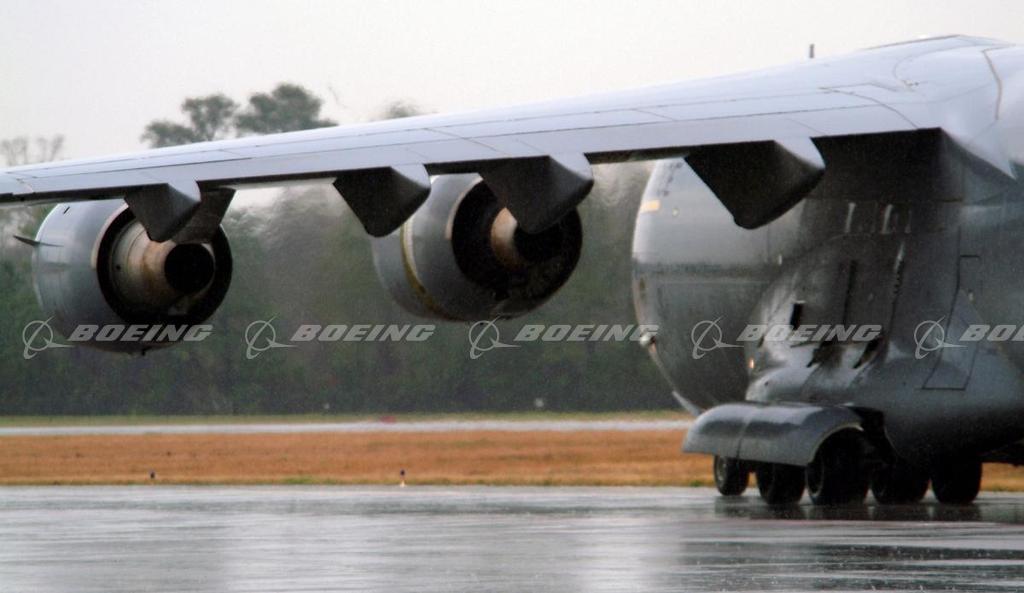 Silhouette of C-17 Globemaster III Tail from Under Wing