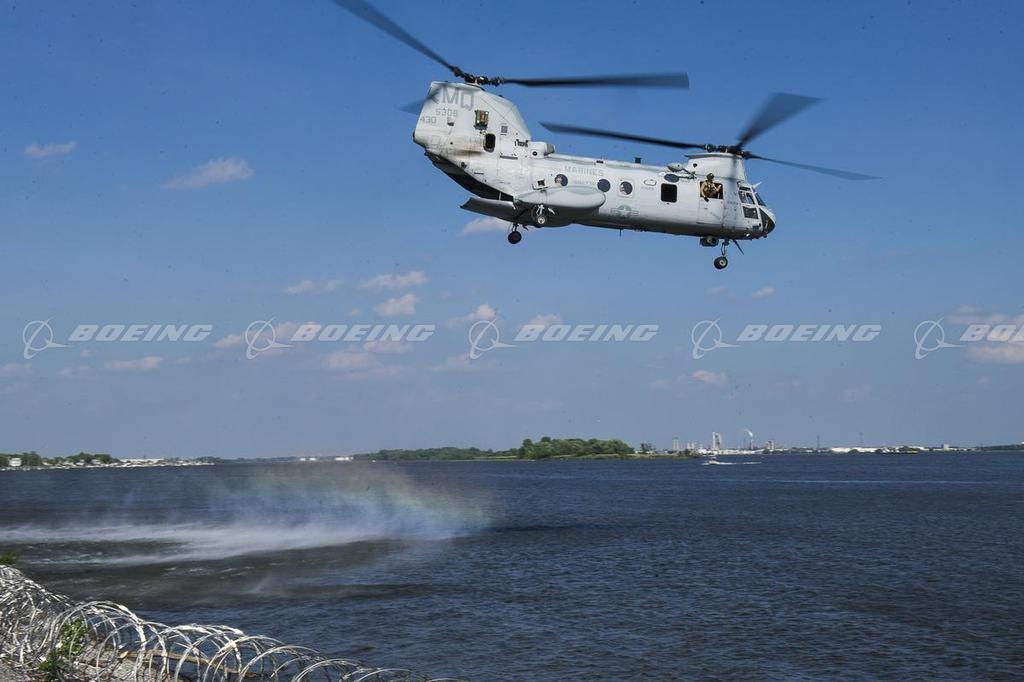 A CH-46 "Phrog" from U.S. Marine Medium Helicopter Squadron 774 departs Philadelphia following a farewell visit and tour in June 2015. The nickname “Phrog” alludes to the rotorcraft's amphibian-like appearance at takeoff. Boeing has supported the CH-46 Sea Knight and the Marines flying them for more than 51 years. Global Services & Support’s Rotorcraft Support program provides transactional supply-chain support and field-service representatives. To meet evolving mission requirements, the V-22 Osprey will provide the Marines with advanced capabilities for its future demands.