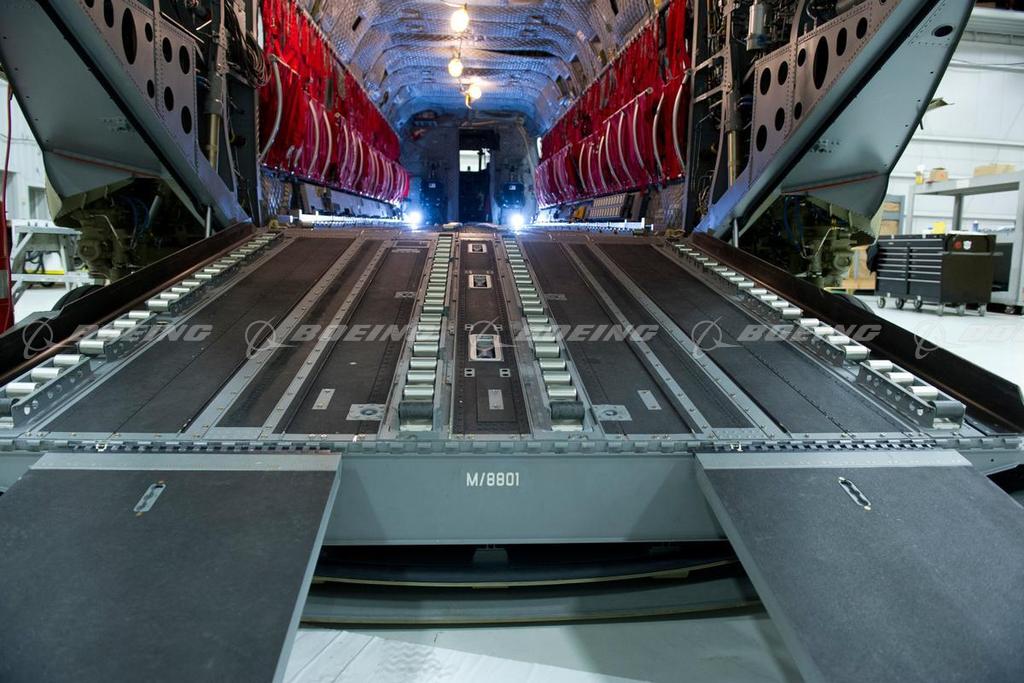 As a CH-47F Chinook makes its way down the production line at Boeing Military Aircraft’s production facility near Philadelphia, the rotorcraft is fitted with the all-new Cargo On/Off Loading System (COOLS). Up to 170 new F-models will be fitted with the upgrade. In addition, the U.S. Army will retrofit the entire current CH-47F fleet. COOLS enables rapid reconfiguration of the helicopter’s floor to convert it from a troop mission to a cargo mission. What used to take several hours can now be done in-flight and within 15 minutes by one person in full military gear. The design is the result of requests made by soldiers in the field.