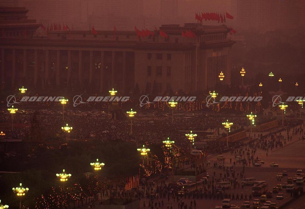 City Street Scene in Tianemen Square, Beijing China at Dusk