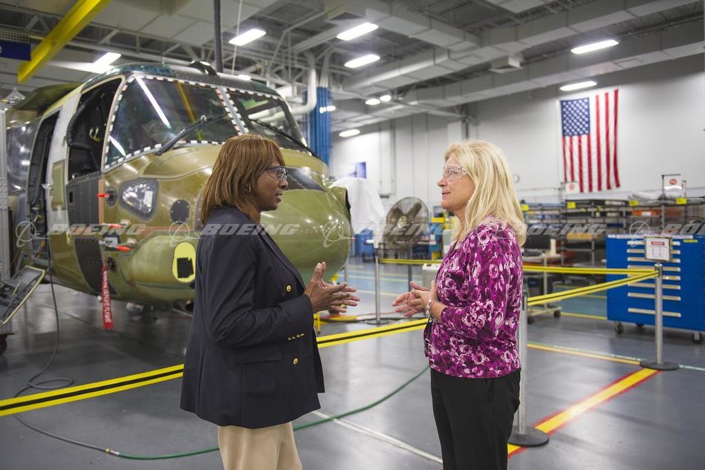 Connie Maltbie-Shulas, Boeing GS&S V-22 Retrofit and Mod Program Manager (on right) with Carolyn Nichols, Director, V-22 Support