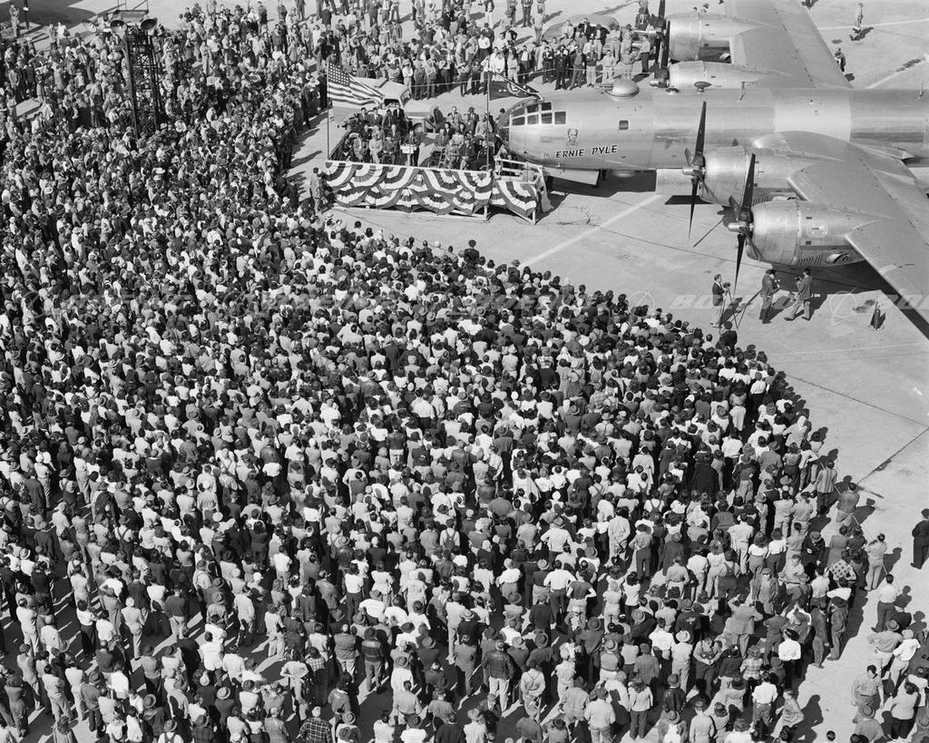 Crowd and B-29 Superfortress at Ernie Pyle Dedication